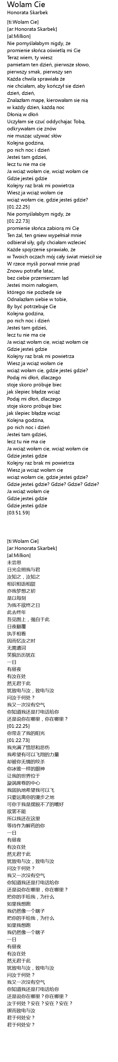 | [03:27.99] | wci wo am ci, gdzie jeste gdzie? |