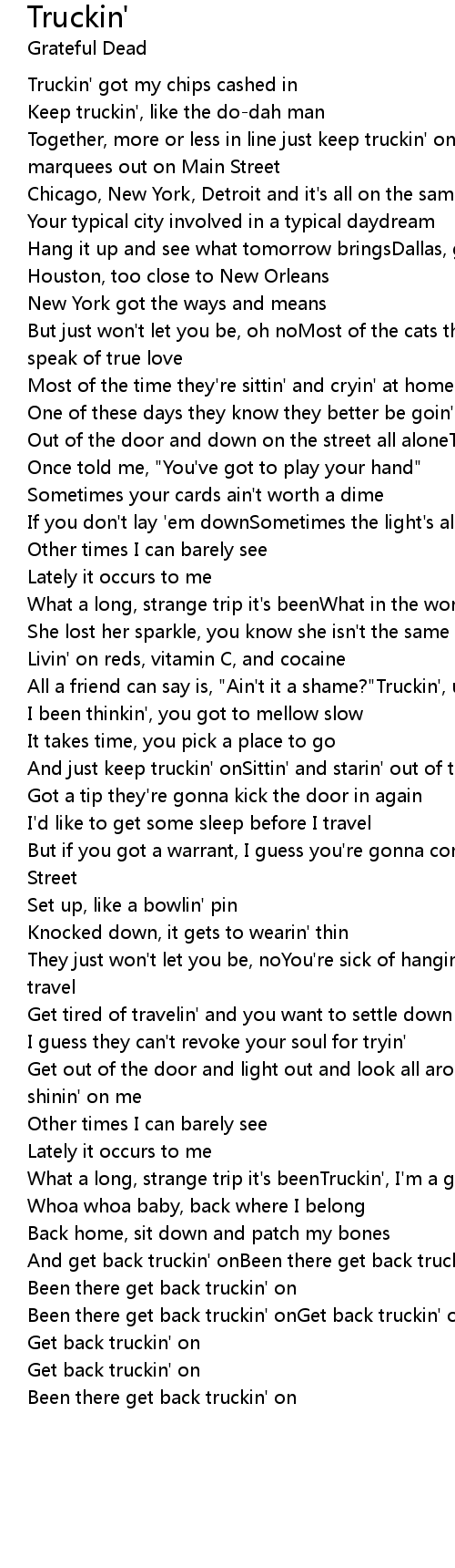 What a long, strange trip it's beenTruckin', I'm a goin' home |
