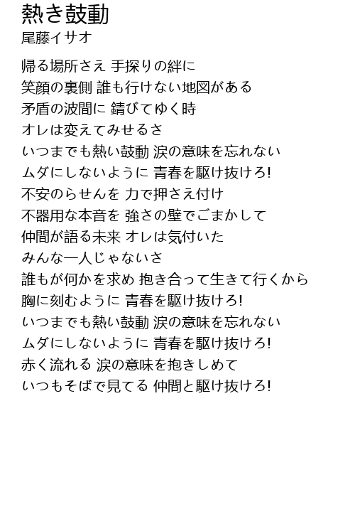 | Song | 熱き鼓動 |