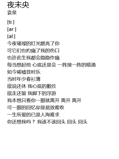 | [01:43.05] | 你还想我吗? 我该不该回头 回头 回头 |