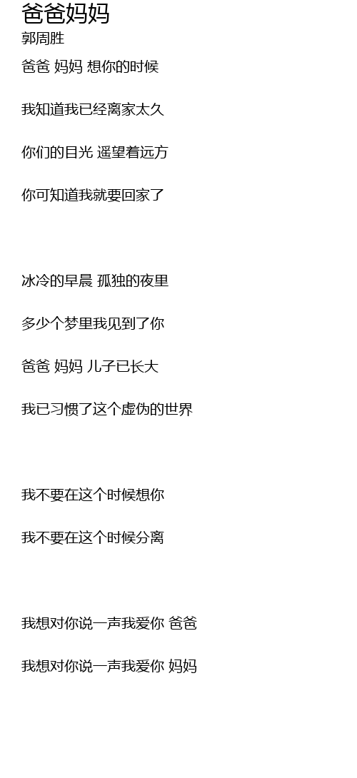 | 爸爸 妈妈 想你的时候 | |