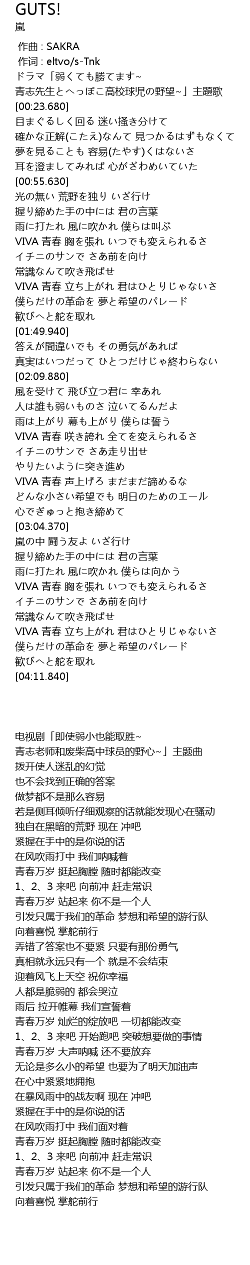 | [03:50.930] | VIVA 青春 立ち上がれ 君はひとりじゃないさ |