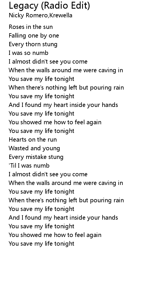 You save my life tonight |