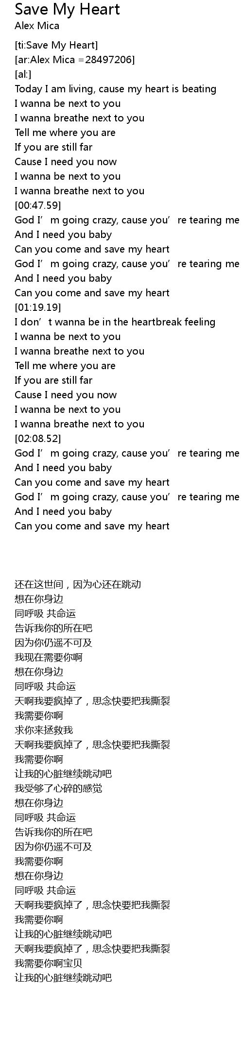 | [03:00.91] | Can you come and save my heart |