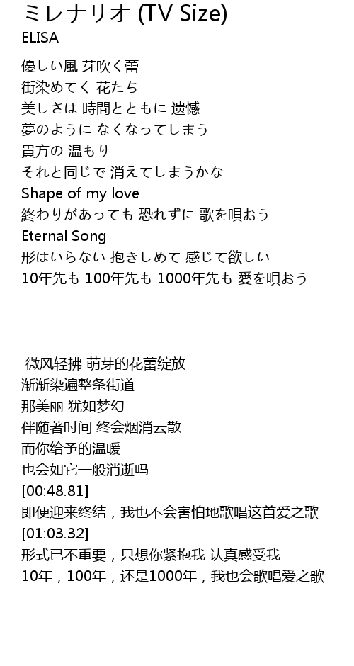 | [01:16.27] | 10年先も 100年先も 1000年先も 愛を唄おう |