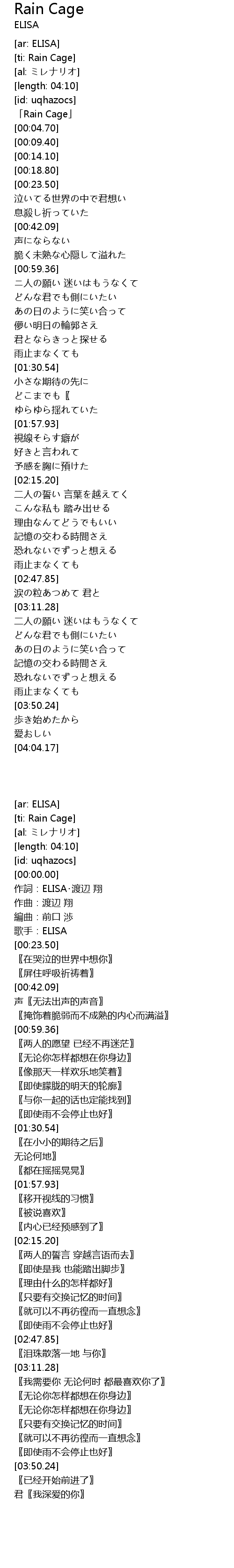 | [00:59.49] | ニ人の願い 迷いはもうなくて |