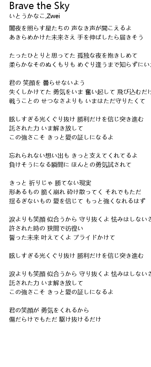 | 失くしかけてた 勇気をいま 奮い起して 飛び込むだけ | |