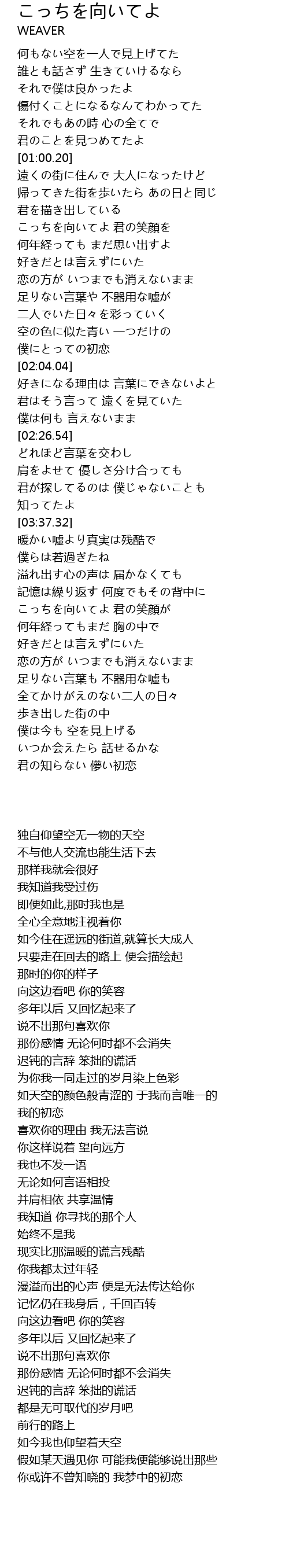 | [01:21.18] | こっちを向いてよ 君の笑顔を |