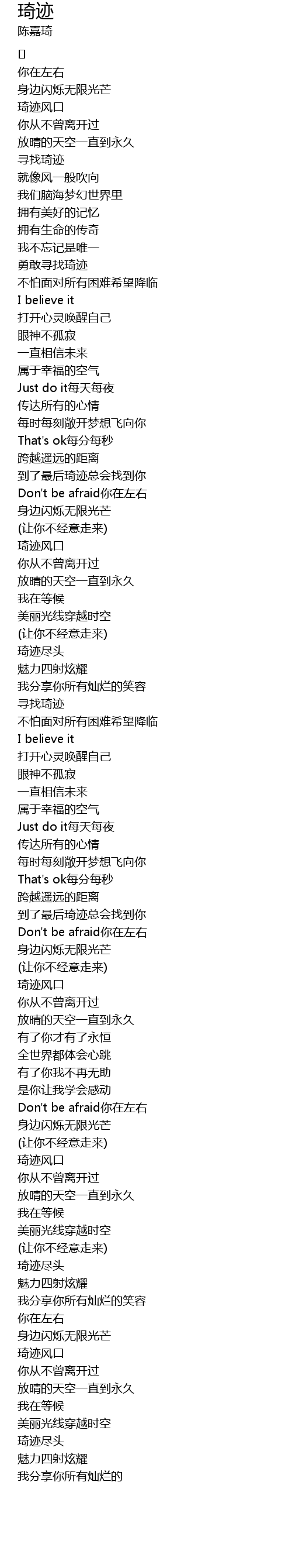 | [00:40.160] | 勇敢寻找琦迹 |