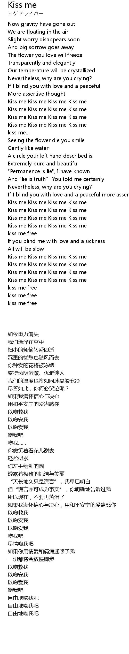 | [03:00.290] | Kiss me Kiss me Kiss me Kiss me |
