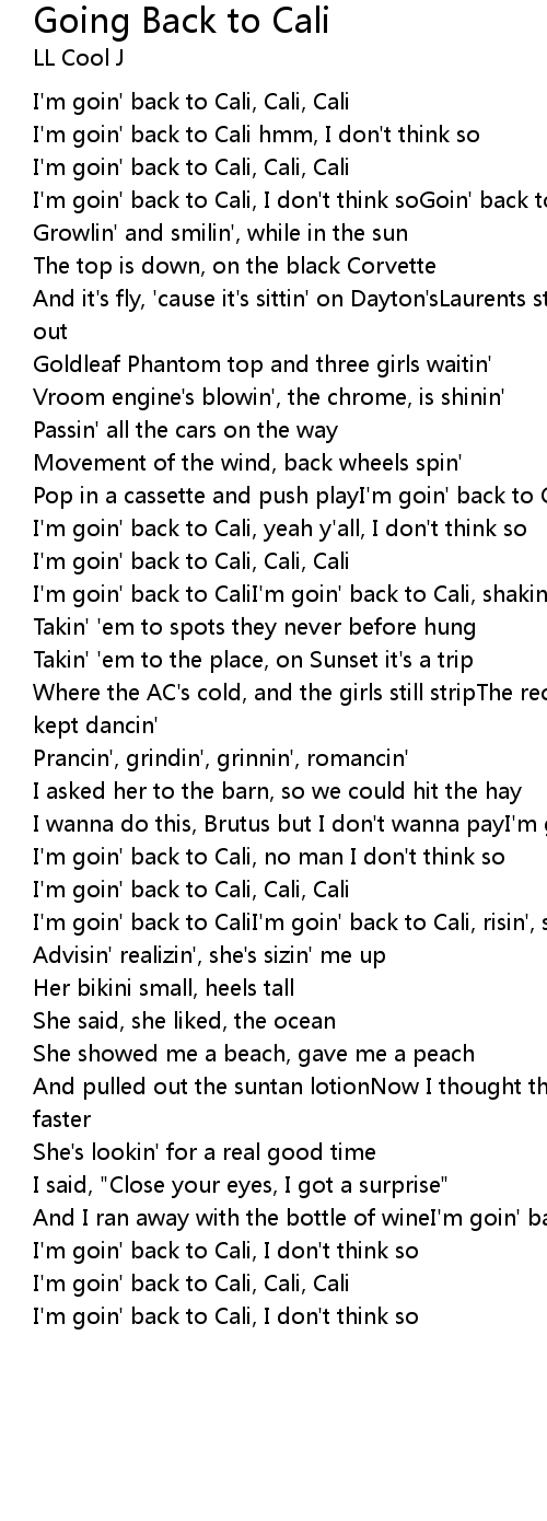 I'm goin' back to Cali, Cali, Cali |