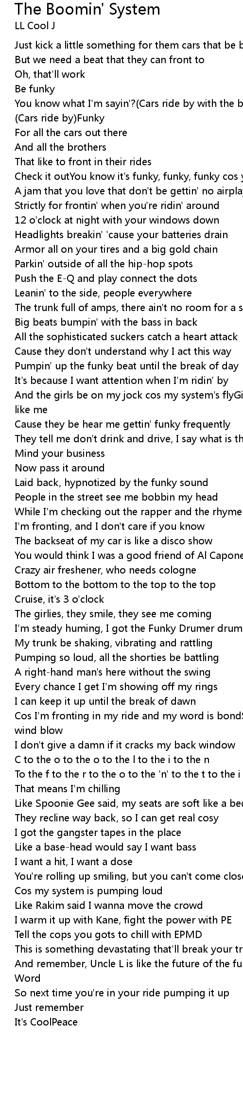 You know what I'm sayin'?(Cars ride by with the boomin systems) |
