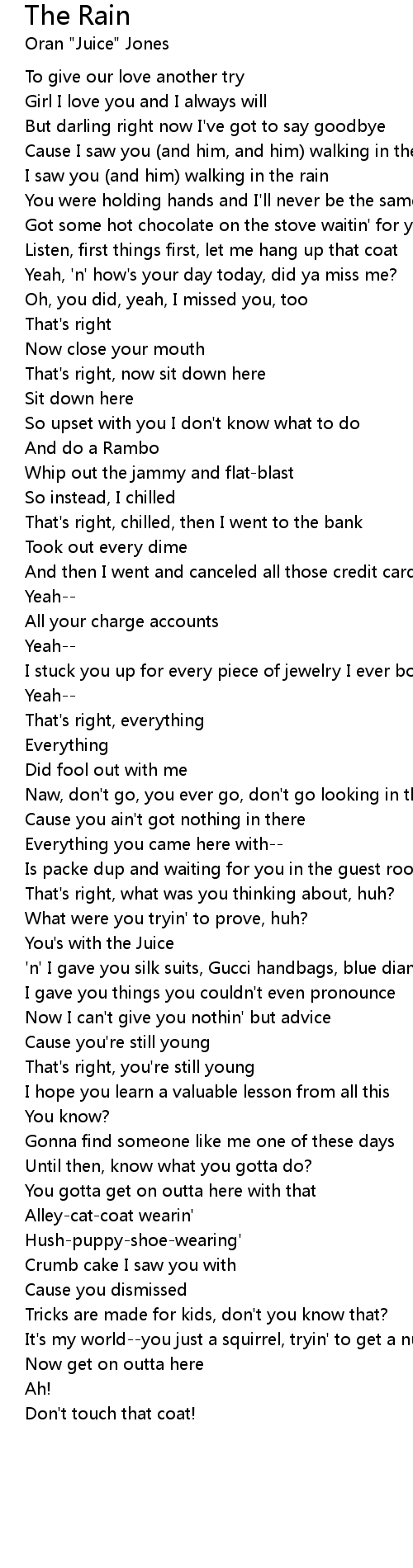 Cause I saw you (and him, and him) walking in the rain |
