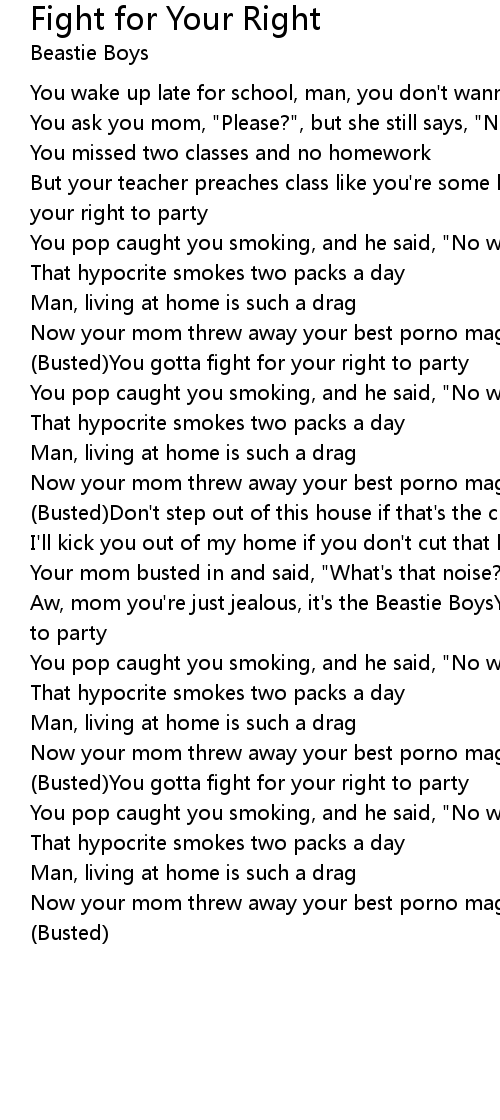 Aw, mom you're just jealous, it's the Beastie BoysYou gotta fight for your right to party |