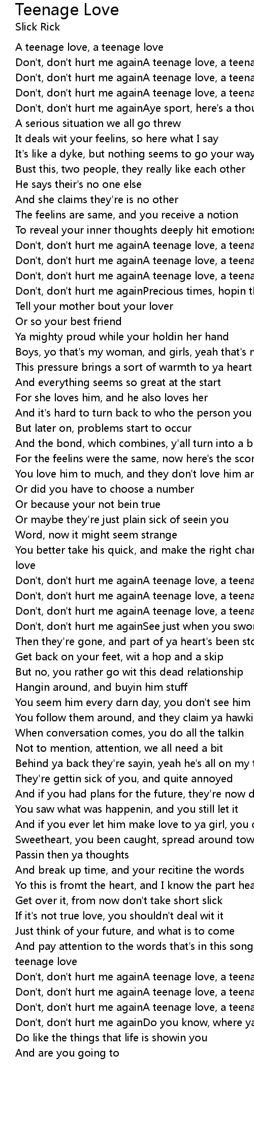 And pay attention to the words that's in this song, they goA teenage love, a teenage love |