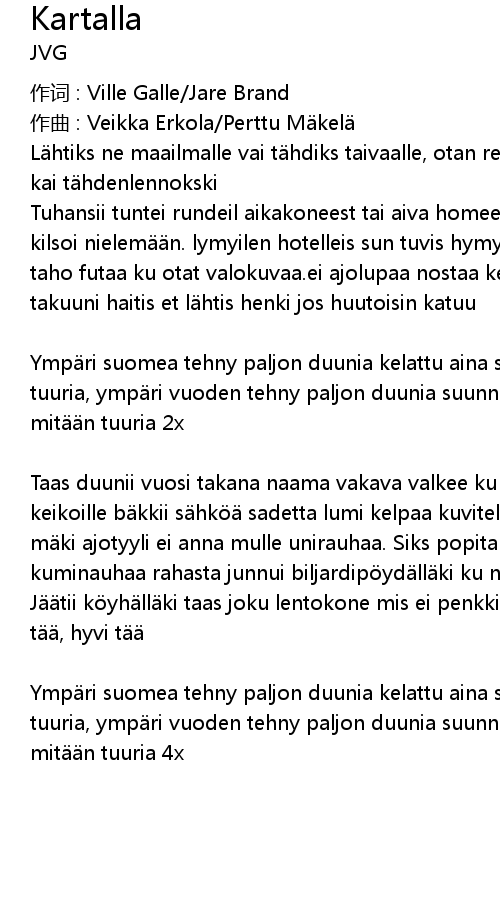 | 作词 : Ville Galle/Jare Brand | |