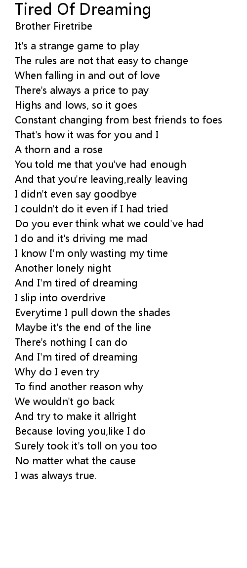 And I'm tired of dreaming |