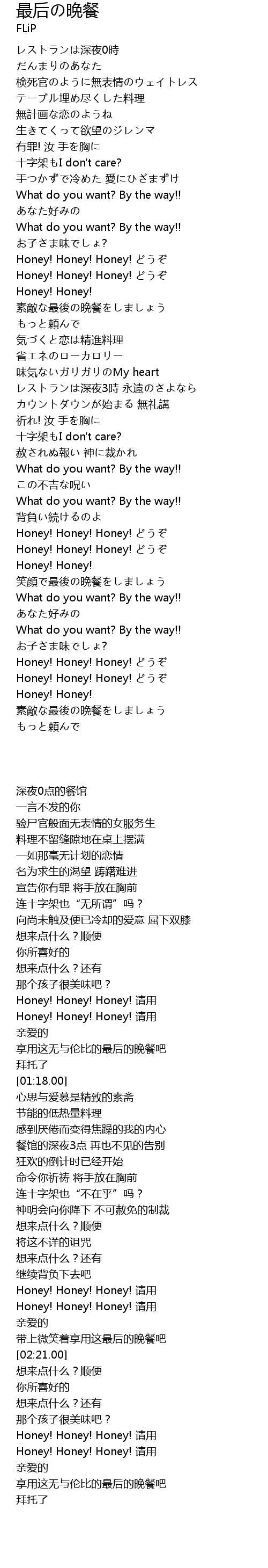 | [02:11.00] | Honey! Honey! Honey! どうぞ |