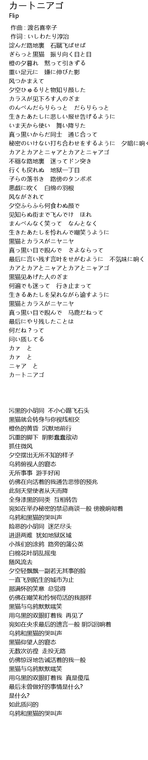 | [01:22.15] | カアとカアとニャアとカアとニャアゴ |