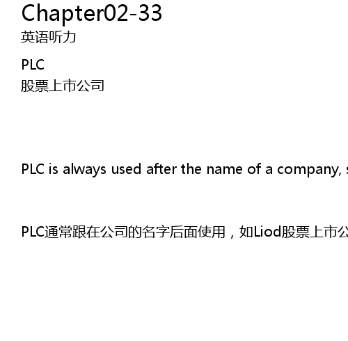 | PLC通常跟在公司的名字后面使用,如Liod股票上市公司 |