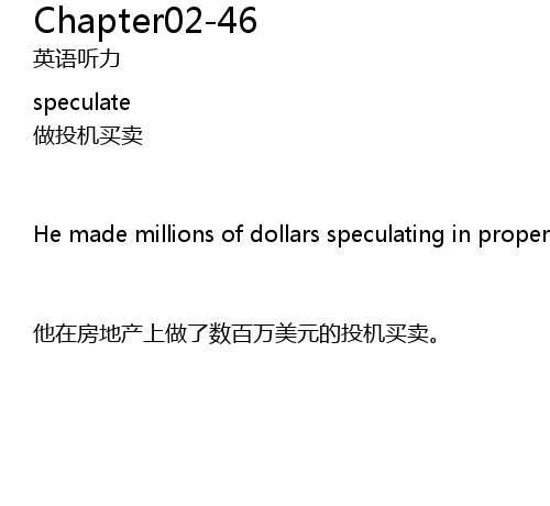 | 他在房地产上做了数百万美元的投机买卖。 |