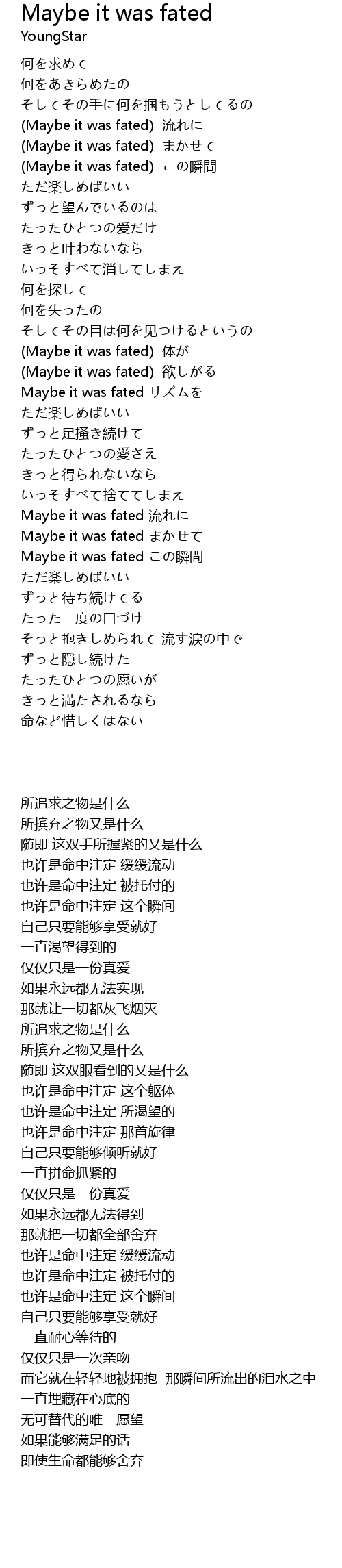 | [00:46.25] | Maybe it was fated shùn jiān |