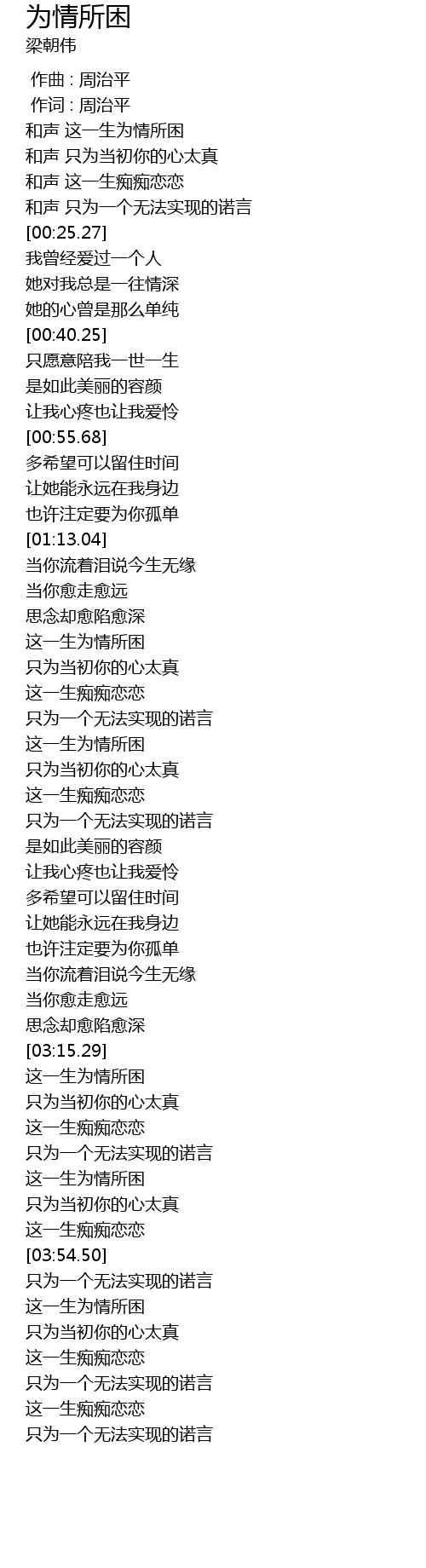 | [03:15.95] | zhè yī shēng wéi qíng suǒ kùn |