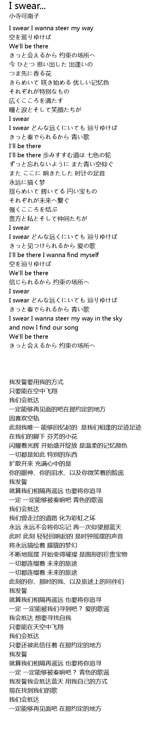| [01:41.010] | I swear どんな远くにいても 辿りゆけば |