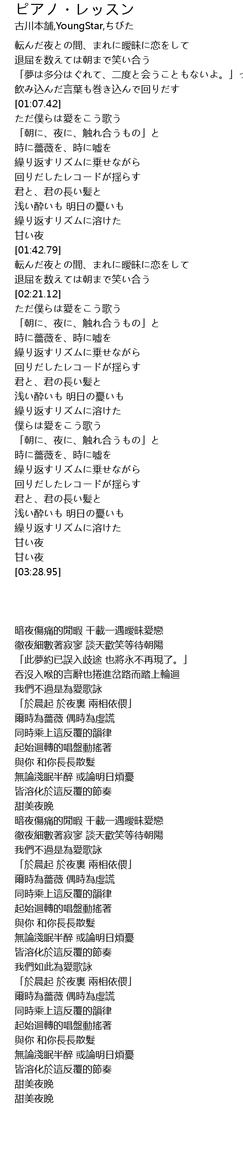 | [01:36.99] | 繰り返すリズムに溶けた |