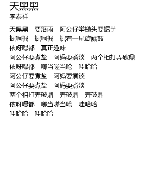 | 天黑黑 要落雨 阿公仔举锄头要掘芋 | |