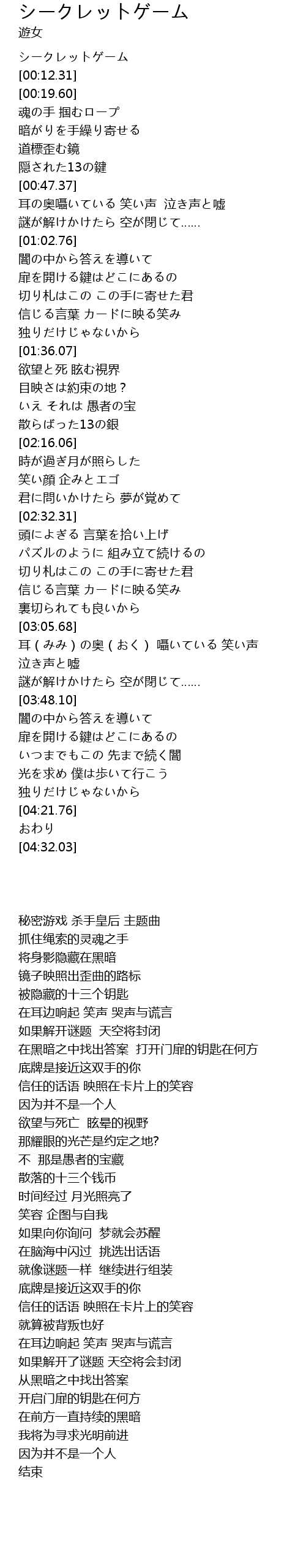| [00:04.46] | シークレットゲーム |