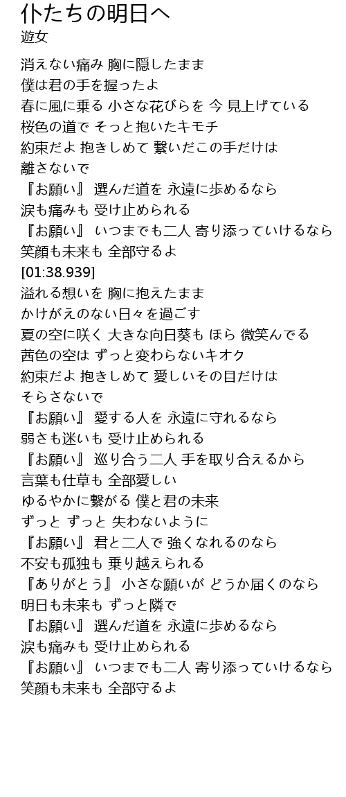 | [01:24.337] | 『お願い』 いつまでも二人 寄り添っていけるなら |