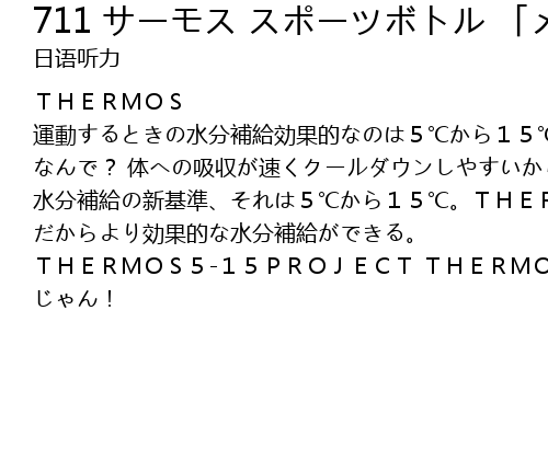 | THERMOS 運動するときの水分補給効果的なのは5℃から15℃。 なんで? 体への吸収が速くクールダウンしやすいから。 水分補給の新基準、それは5℃から15℃。THERMOSなら長時間冷たさをキープ! だからより効果的な水分補給ができる。 THERMOS5-15PROJECT THERMOS じゃん! |