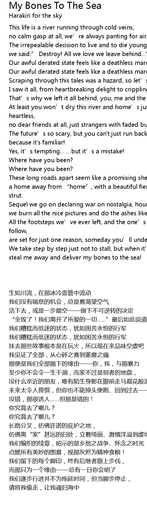 | Song | My Bones To The Sea |