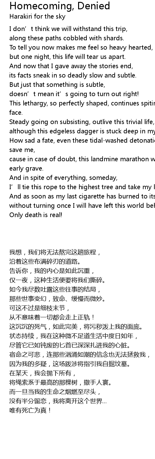 | [03:38.62] | This lethargy, so perfectly shaped, continues spiting filth in my face. |