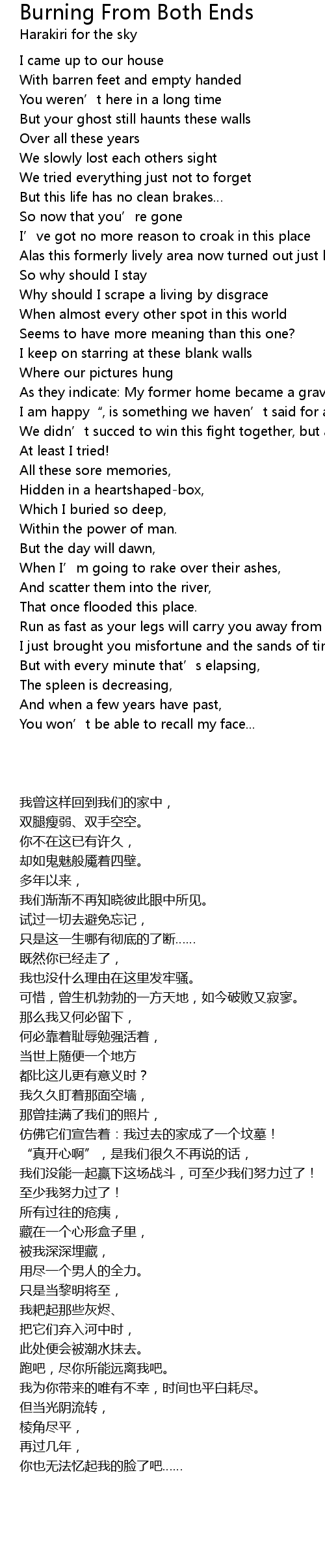 | Song | Burning From Both Ends |