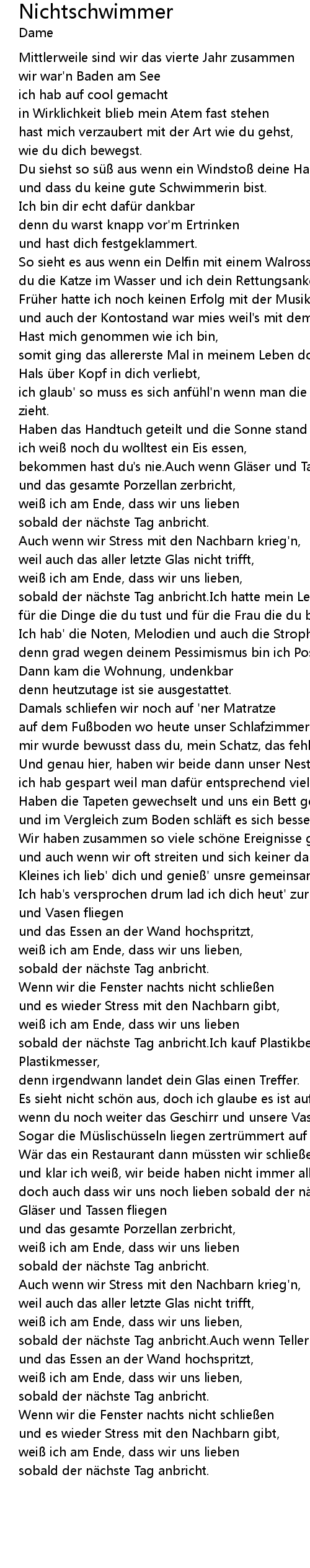 | Song | Nichtschwimmer |