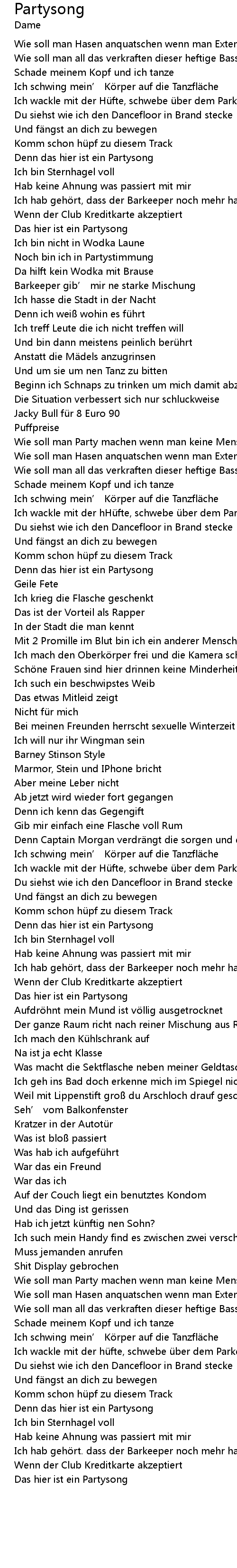 | Ich schwing mein' K rper auf die Tanzfl che | |