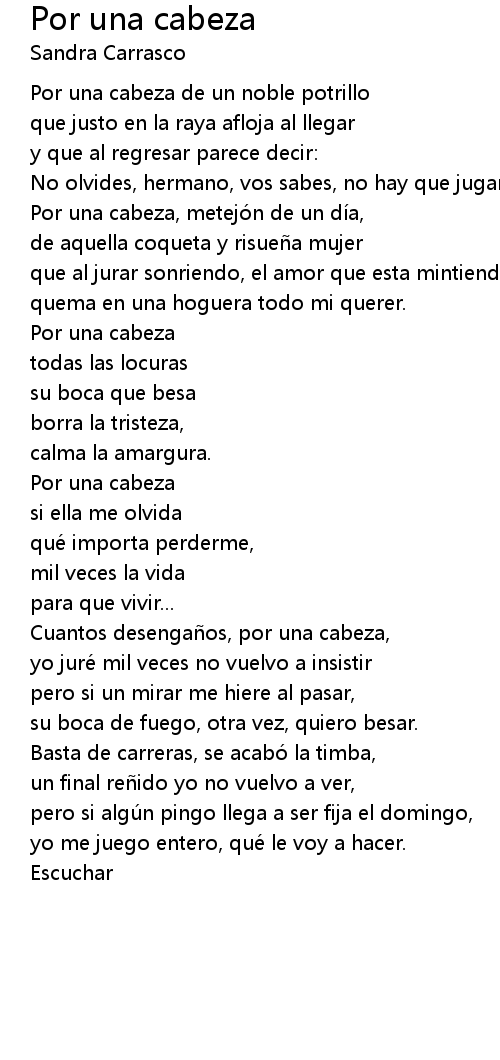 | Por una cabeza, metejó n de un dí a, | |