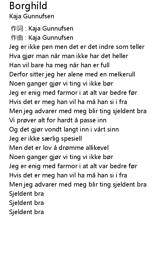 | [00:00.000] | 作词 : Kaja Gunnufsen |