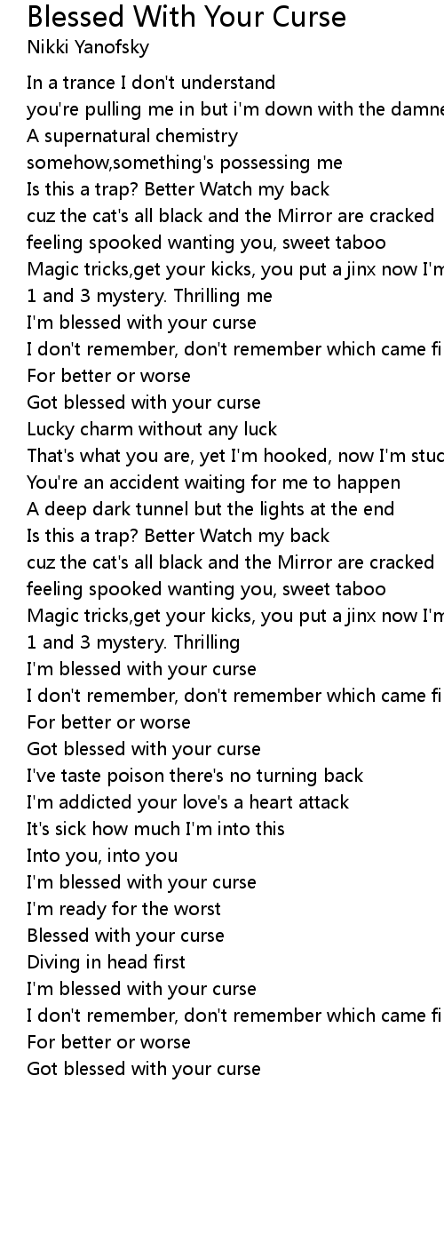 I'm blessed with your curse |
