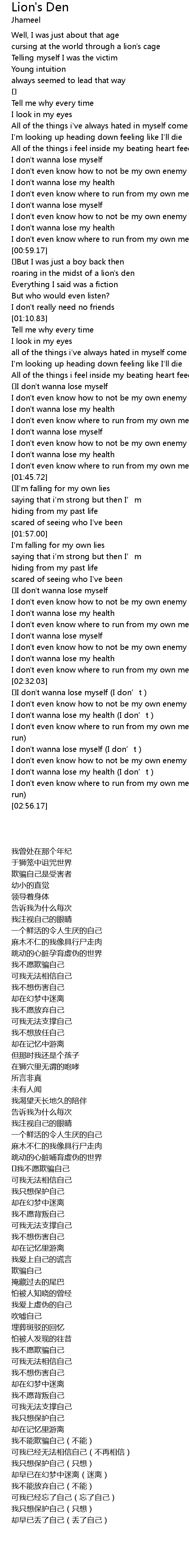 | [00:15.09] | cursing at the world through a lion' s cage |