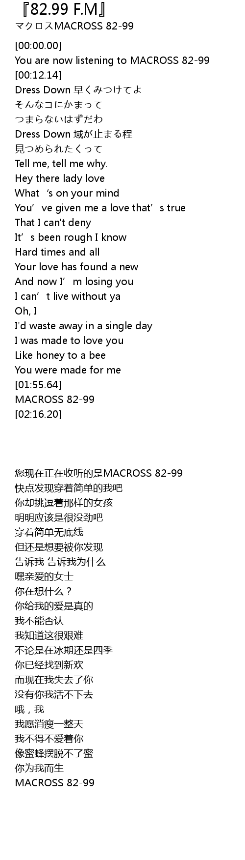 | [00:07.88] | You are now listening to MACROSS 82-99 |