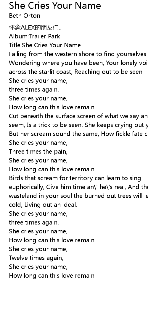 | [01:50.65] | seem, Is a trick to be seen, She keeps crying out your name, |