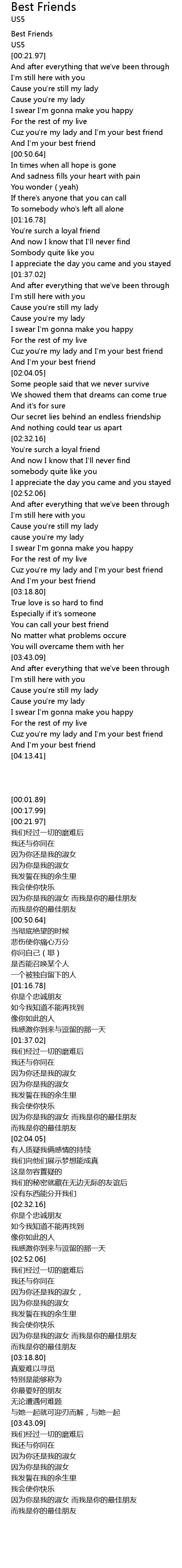 | [00:41.20] | Cuz you're my lady and I'm your best friend |
