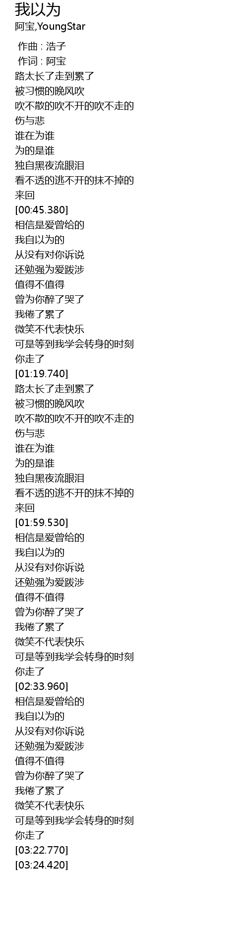 | [02:06.520] | wǒ zì yǐ wéi de |