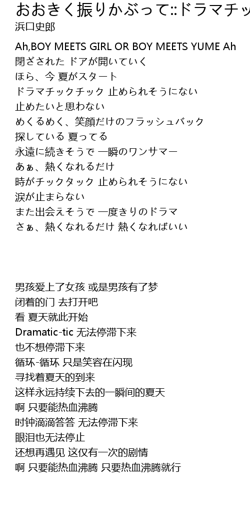 | [00:30.340] | ドラマチックチック 止められそうにない |