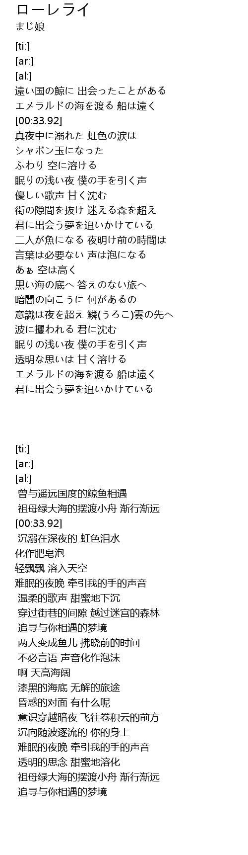| [01:36.04] | 二人が魚になる 夜明け前の時間は |