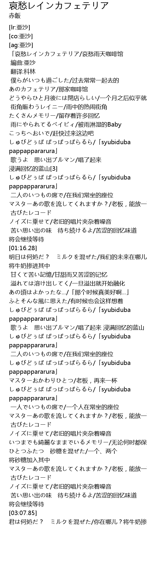 | [00:00.00] | 「哀愁レインカフェテリア/哀愁雨天咖啡馆 |