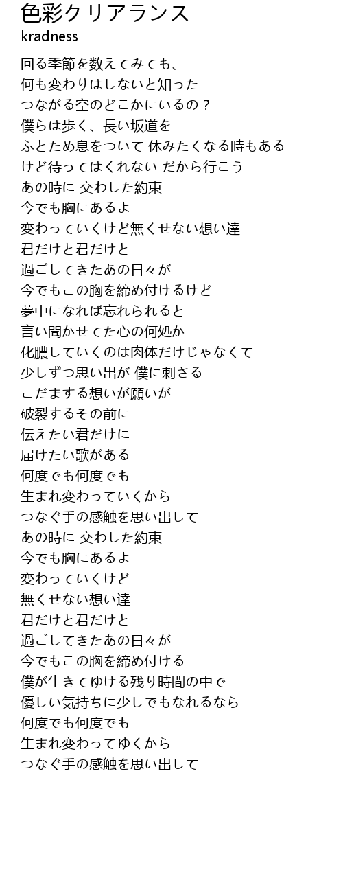 | [03:35.26] | 僕が生きてゆける残り時間の中で |